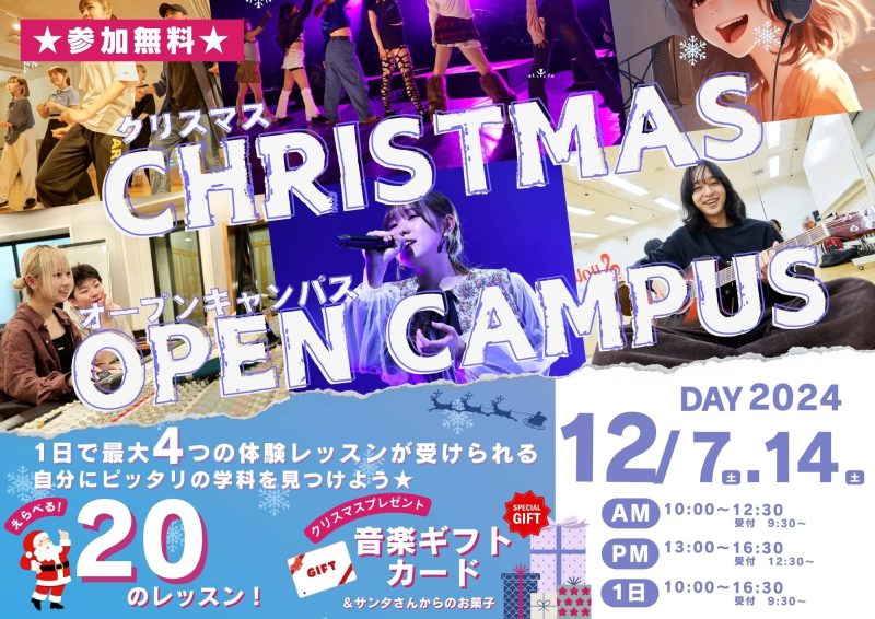 12月7・14日(土)は、それほど体験レッスンが充実しているオープンキャンパスになっています!!