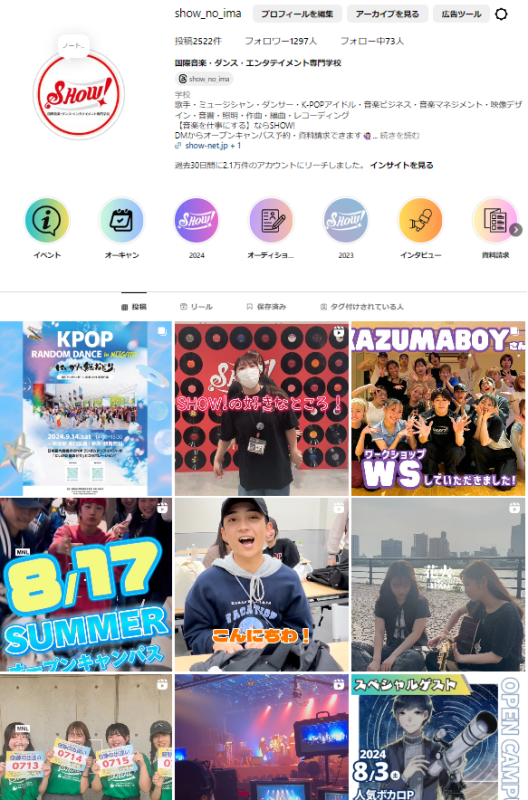 SHOW!のキャンパスライフはインスタでお届け中