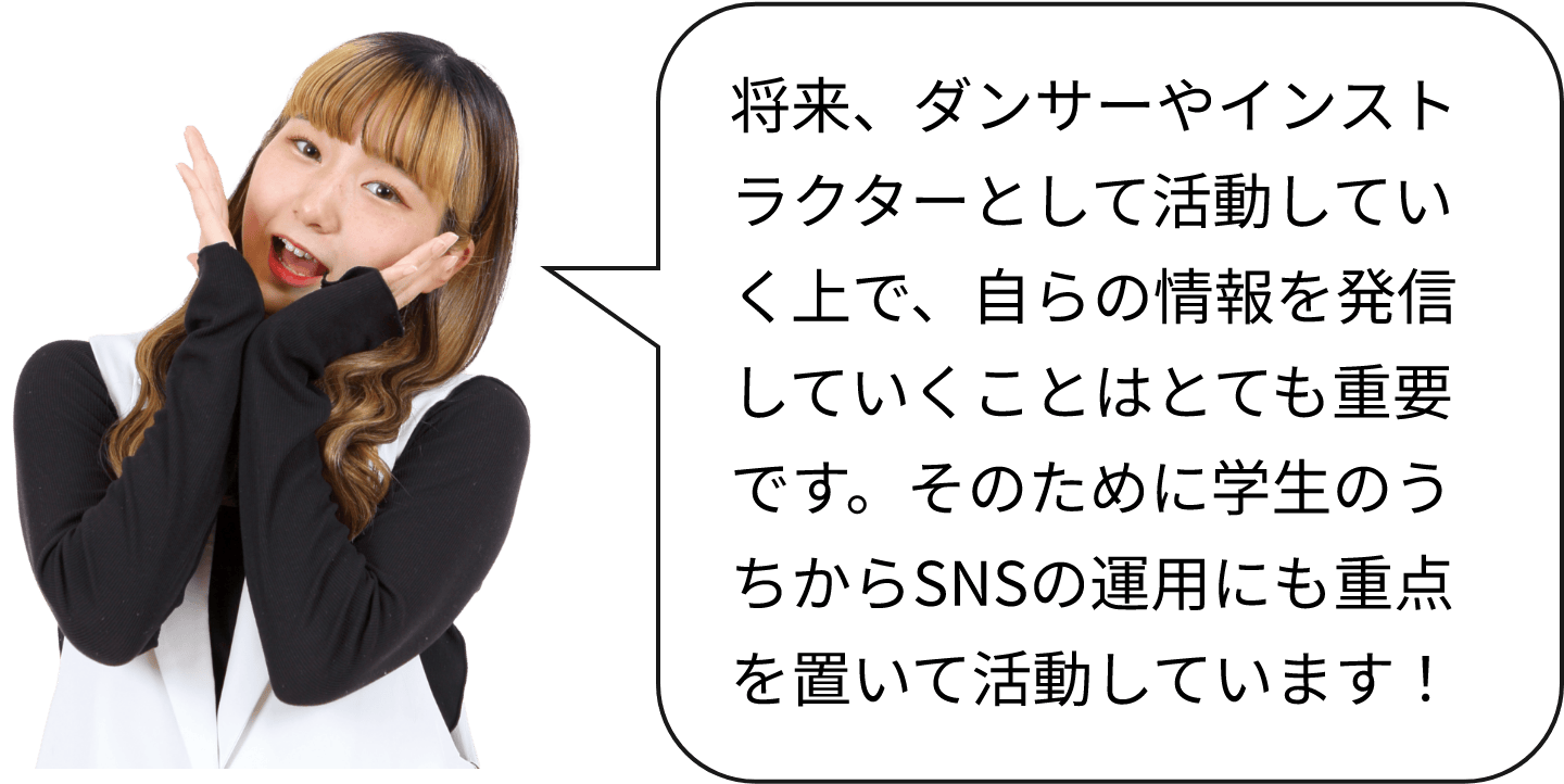 当日のパフォーマンスだけではなく日頃から授業で学んでいる企画から広報、運営までを学生たちの力で行い発表会を開催し、ダンス以外の能力を身につけます。