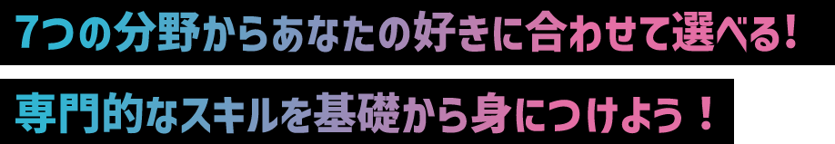 ヴォーカリストやミュージシャン、ネットアーティストなど、未来の音楽業界で活躍できるアーティストを目指します。自分の専門分野を選んで、基礎から学びます。